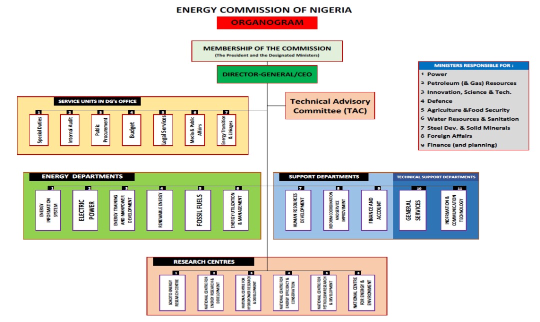 Below is a chart in pdf of the Organisational Structure of the Energy Commission of Nigeria that you can download.